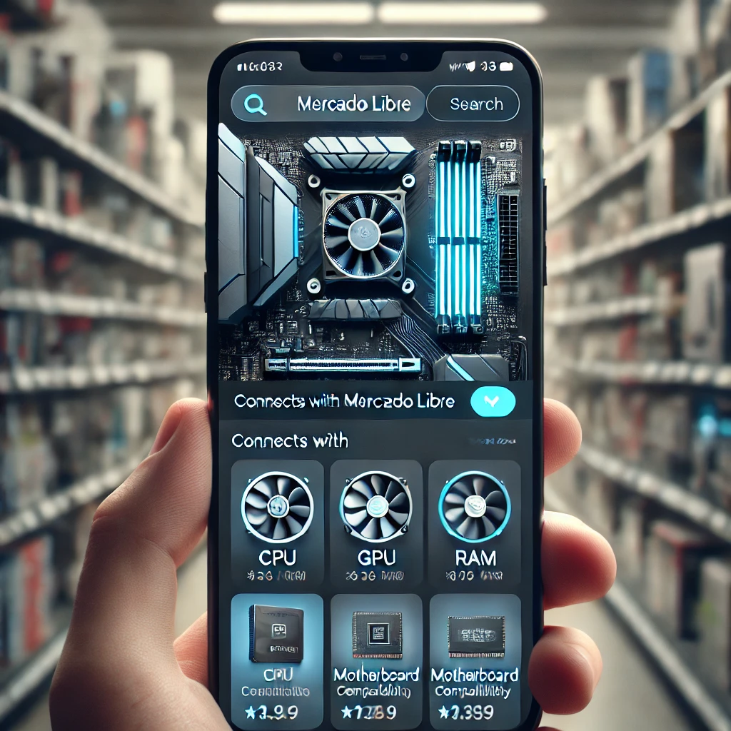 Una página web que te ayuda a encontrar las partes compatibles entre sí para armar tu propia PC, proporcionando resultados con enlaces directos a productos disponibles en Mercado Libre.